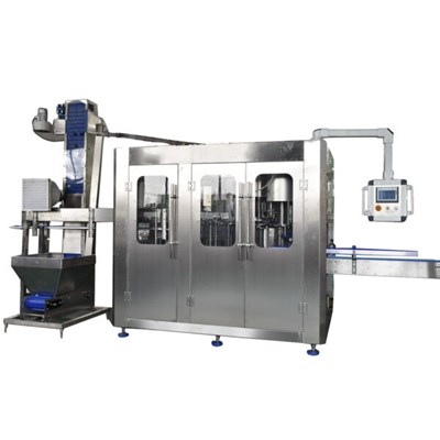 Máy chiết rót nước đóng chai KN-8-8-4 là thiết bị tích hợp 3 chức năng trong 1, bao gồm súc rửa chai, chiết rót nước và đóng nắp tự động trên cùng một hệ thống.