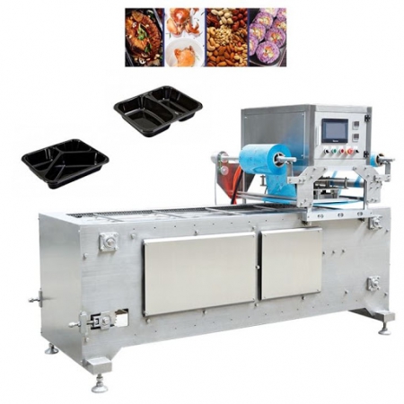 Máy dán miệng khay, vỉ, ly, tô, hộp, hủ tự động được dùng để đóng gói khay, vỉ cho các sản phẩm như thực phẩm tươi sống, thực phẩm ăn liền, cơm, mì, bún, salad, rau, củ, quả, thực phẩm đông lạnh ... Máy được dùng cho sản phẩm với số lượng vừa đến lớn đảm bảo thay đổi sản phẩm nhanh chóng. Khay đưa khuôn vào và lấy khuôn ra tự động nhờ kẹp giữ khay. Hệ thống HMI xác định chính xác chuyển động của kẹp và mô tơ servo đảm bảo di chuyển các khay an toàn. Thiết kế 360o theo hàng, có thể tiếp cận tất cả các bộ phận và công cụ trong máy giúp cho việc bảo trì và vệ sinh máy dễ dàng. Khung máy được làm từ thép không gỉ, dễ vệ sinh. Máy nhỏ gọn, dễ di chuyển, phù hợp với không gian nhỏ hẹp.
