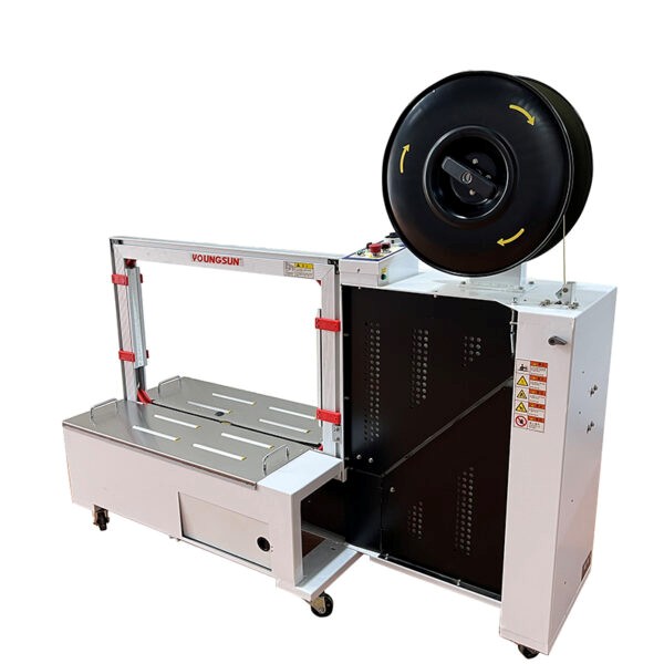 Máy vận hành hoàn toàn tự động, chỉ cần đặt thùng hàng vào vị trí, thiết bị sẽ tự động siết dây, hàn nhiệt và cắt dây, đảm bảo thùng hàng được đóng đai chắc chắn trước khi vận chuyển.