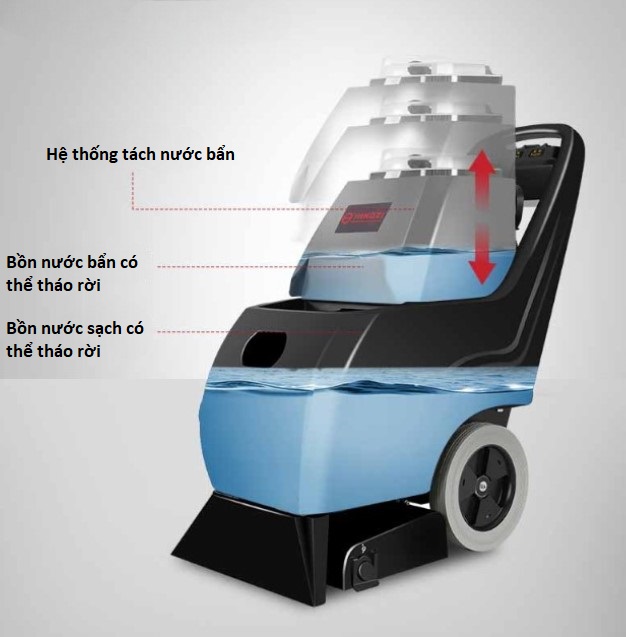 - 🌊 Bơm hút mạnh mẽ: Thu hồi lượng lớn nước bẩn, giúp thảm nhanh khô, không còn vết nhờn.