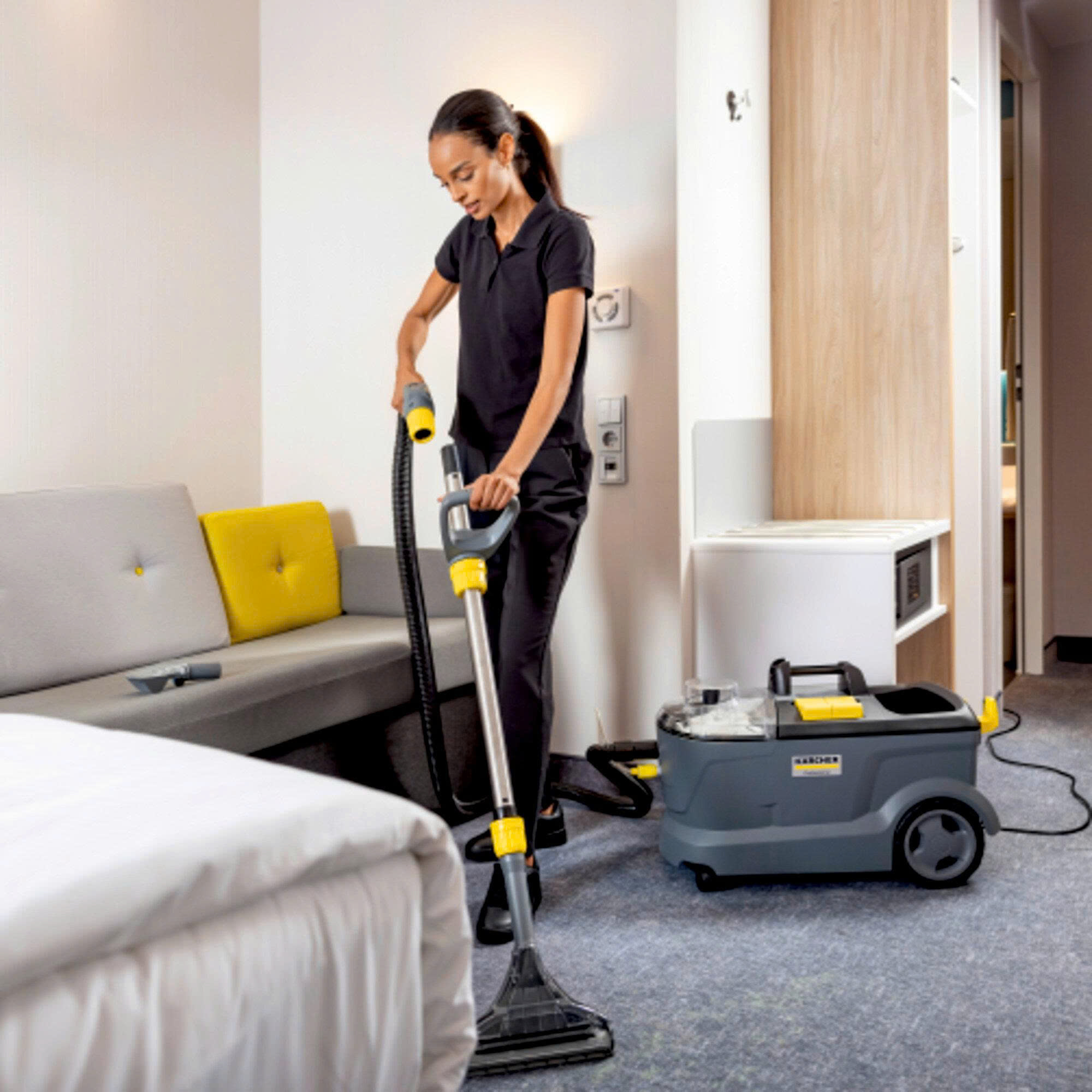 Không chỉ là máy giặt thảm, Puzzi 10/1 Adv còn là trợ thủ đắc lực cho các dịch vụ vệ sinh chuyên nghiệp, khách sạn, văn phòng, trung tâm thương mại hay bất kỳ không gian nào cần vệ sinh thảm, ghế và bề mặt vải.