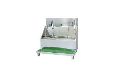 - Đặt từng chân vào ủng, dùng bàn chải chà nhẹ dưới vòi nước chảy để rửa sạch.