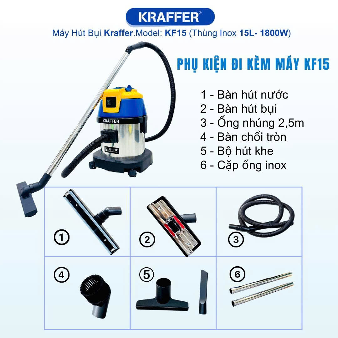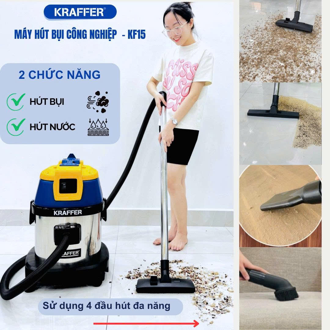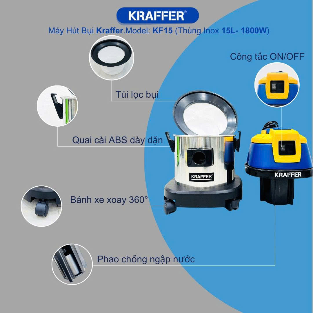 KRAFFER KF15 1800W – MÁY HÚT BỤI ĐA NĂNG CHO NHÀ XƯỞNG, VĂN PHÒNG VÀ GIA ĐÌNH