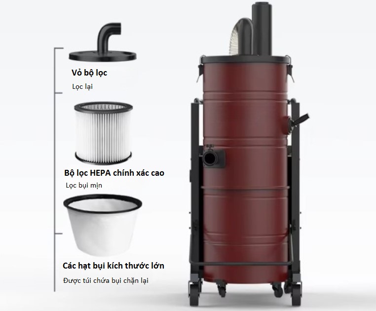 🔬 Hệ thống lọc đa tầng chuẩn công nghiệp, giúp ngăn bụi quay ngược: