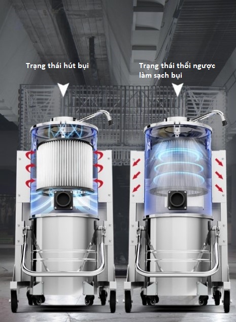 🏗️ 3. HỆ THỐNG HÚT BỤI XUNG TỰ ĐỘNG – LUÔN GIỮ LỰC HÚT MẠNH