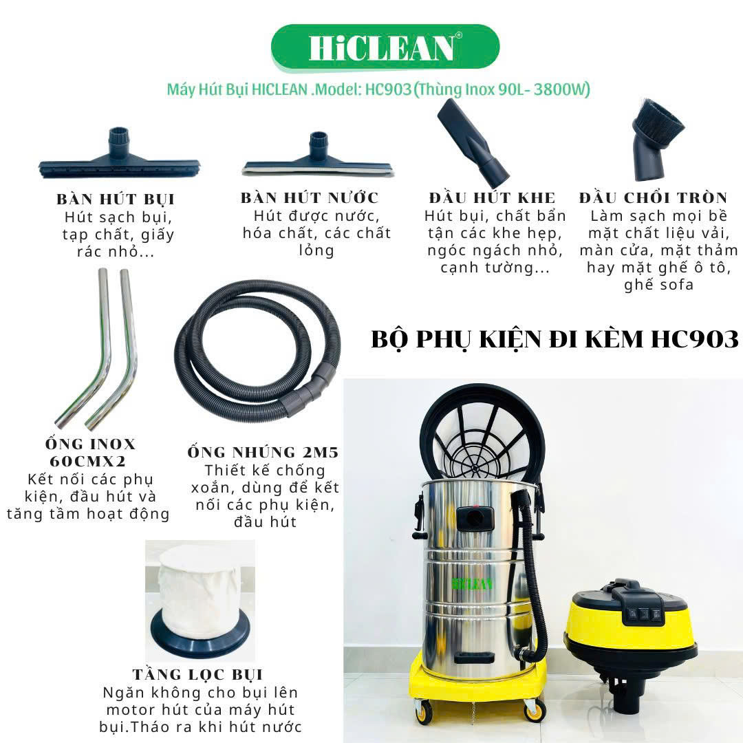 💡 Bộ phụ kiện giúp HC 903 xử lý mọi loại bụi bẩn và chất lỏng, đảm bảo môi trường làm việc sạch sẽ, an toàn và hiệu quả.
