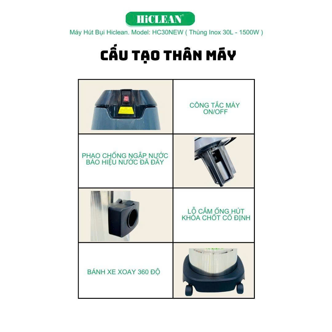 Máy hút bụi công nghiệp HiClean HC30 NEW sở hữu nhiều ưu điểm vượt trội: