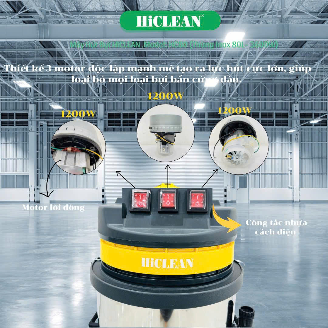 Với thiết kế chắc chắn, motor bền bỉ, hiệu suất vượt trội, thùng chứa lớn và tính năng đa năng, HiClean HC80 không chỉ là máy hút bụi công nghiệp thông thường, mà là giải pháp vệ sinh toàn diện cho mọi doanh nghiệp và nhà máy.