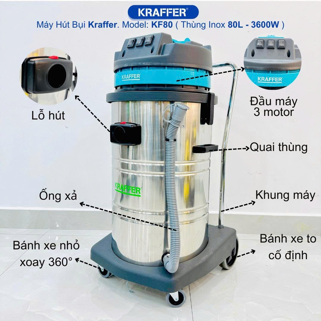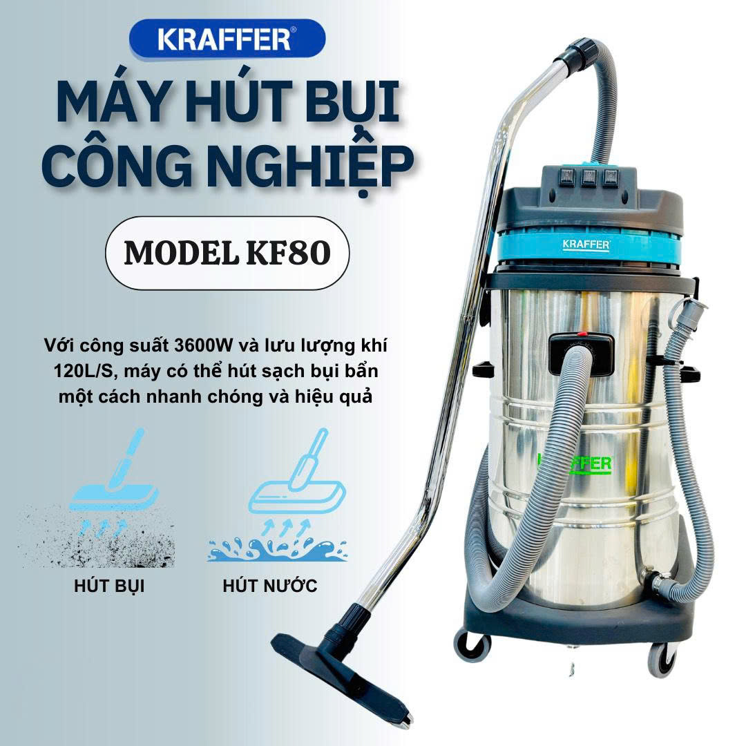 MÁY HÚT BỤI CÔNG NGHIỆP KRAFFER KF80 (3600W) – GIẢI PHÁP VỆ SINH TOÀN DIỆN CHO NHÀ XƯỞNG VÀ KHO BÃI
