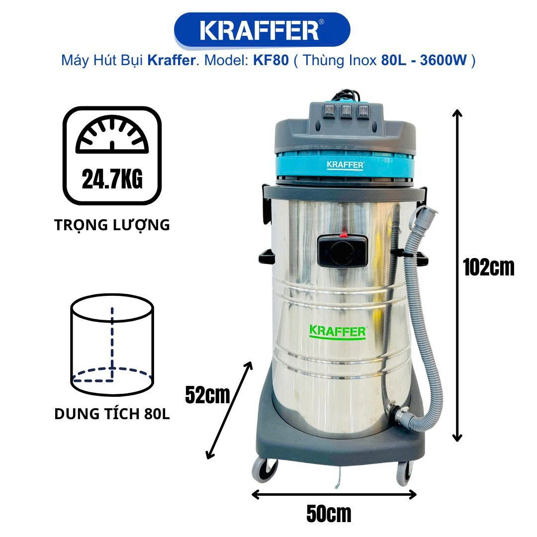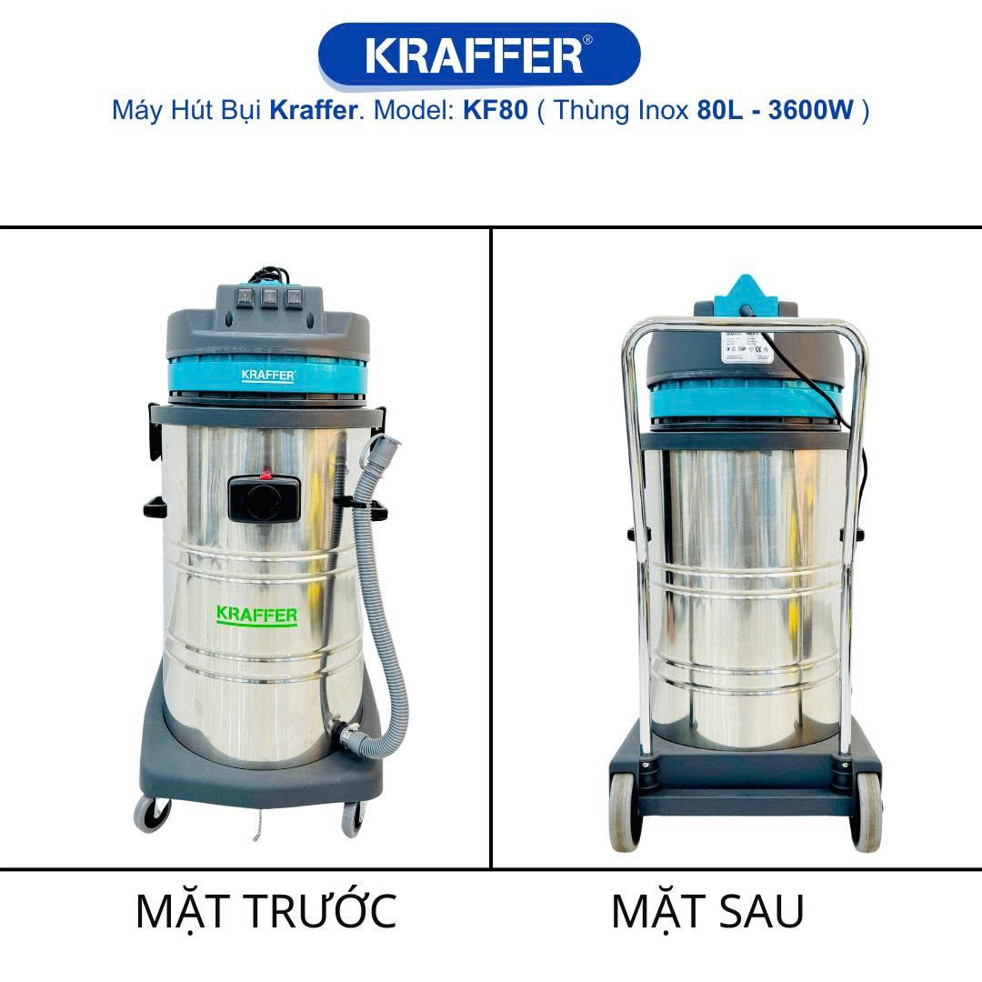 Bạn còn chần chừ gì nữa? Máy hút bụi công nghiệp Kraffer KF80 (3600W) là giải pháp tiết kiệm thời gian, công sức và chi phí, đồng thời giữ môi trường làm việc luôn sạch sẽ, an toàn và chuyên nghiệp.