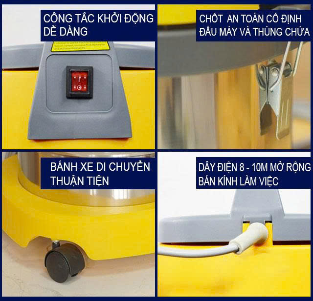 - 🧹 Đa năng, tiện dụng: Hút bụi khô, nước, rác thải công nghiệp, dễ dàng vệ sinh mọi bề mặt.