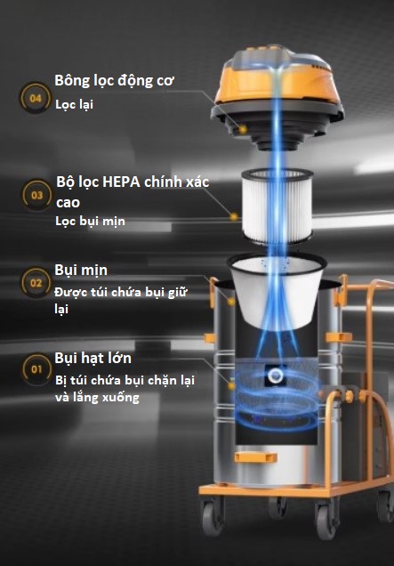 - Hút sạch bụi mịn công nghiệp