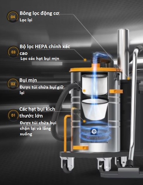 Công suất mạnh – lực hút ổn định – vận hành bền bỉ – làm sạch nhanh vượt trội.