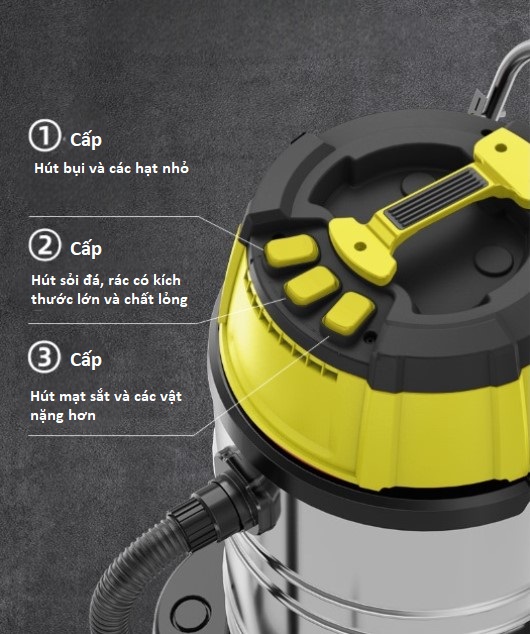 - Cấp ③: Hút mạt sắt, rác công nghiệp nặng