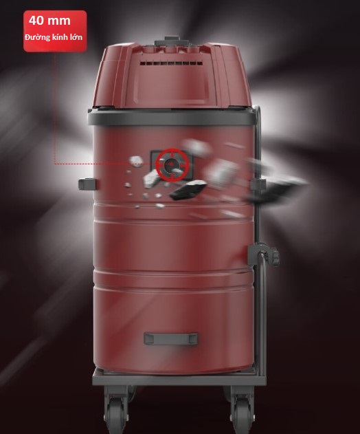 💡 Phạm vi hút lên tới 40 mm đường kính, giúp vệ sinh nhanh chóng mọi ngóc ngách, gầm kệ, kho xưởng và nhà máy.