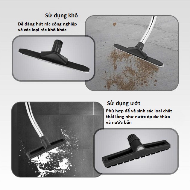 Máy hỗ trợ cả hút khô lẫn hút ướt, giúp bạn dễ dàng xử lý mọi loại địa hình và môi trường: