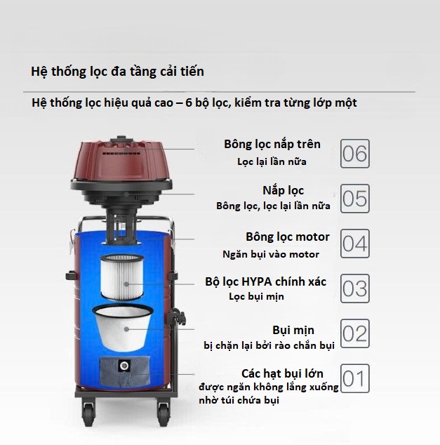- Lọc HEPA hiệu suất cao – Bắt bụi siêu mịn