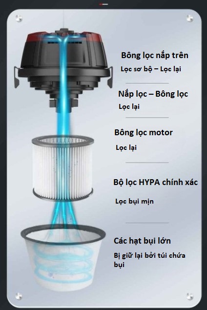 - Lọc HEPA hoặc lọc tinh – Chặn bụi siêu mịn