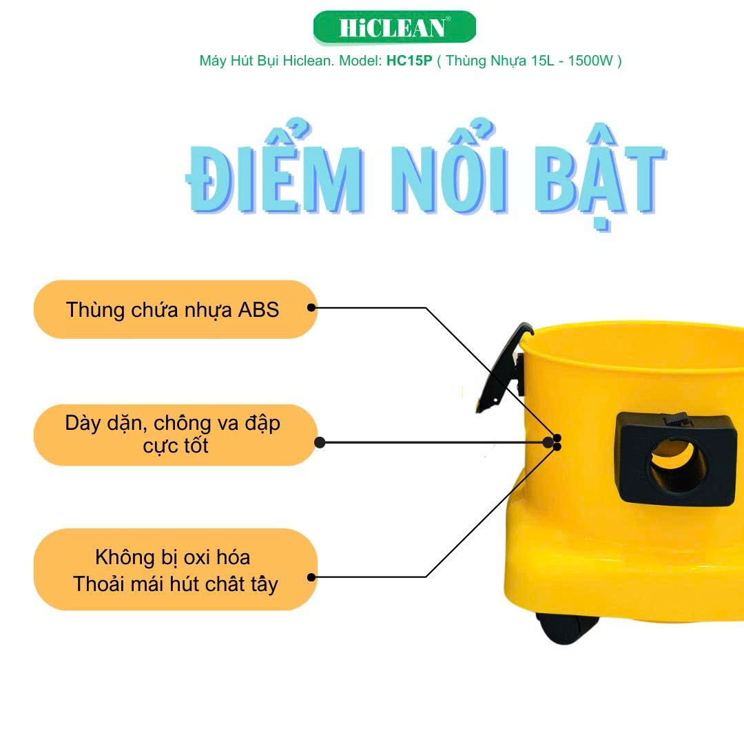 Máy hút bụi HICLEAN HC15P là người bạn đồng hành tuyệt vời cho mọi gia đình: đa năng, mạnh mẽ, bền bỉ, dễ sử dụng và bảo quản, giúp bạn dọn sạch bụi bẩn, lông thú, chất lỏng và mảnh vụn nhanh chóng, tạo không gian sống sạch sẽ và trong lành.
