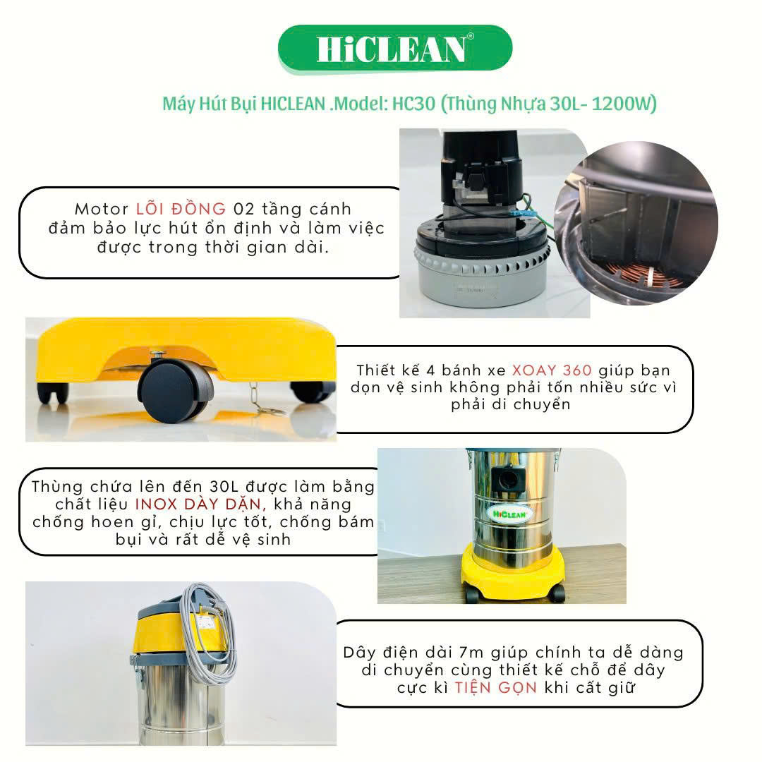 MÁY HÚT BỤI KHÔ ƯỚT HICLEAN HC30 – “CHIẾN BINH LÀM SẠCH” ĐÁNG SỞ HỮU NHẤT 2025!