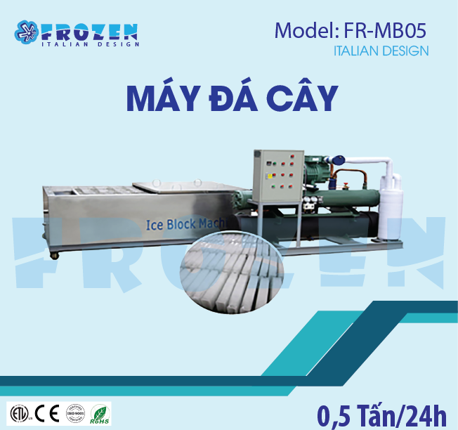 Thiết bị quan trọng nhất của hệ thống máy đá cây là bệ muối. Thông thường bệ muối được xây dựng từ gạch thẻ và có lớp cách nhiệt dày 200mm, bên trong bệ là hệ thống khung đỡ các linh đá, dàn lạnh. Đại bộ phận các thiết bị trong bị đá là thép nên quá trình ăn mòn tương đối mạnh, sau một thời gian làm việc nhất định nước muối đã nhuộm màu vàng của rỉ sắt, chất lượng vệ sinh không cao.