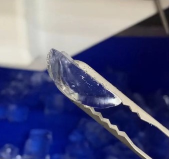 Khác với đá viên vuông truyền thống, loại đá này có hình dạng cong mềm mại, giúp viên đá ôm sát thành ly và tạo hiệu ứng thẩm mỹ cao.