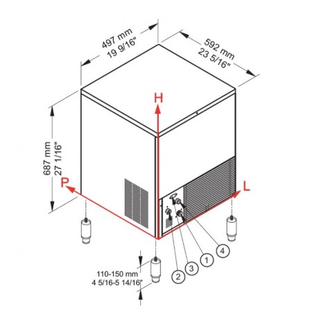Chân thép không gỉ có thể điều chỉnh: Máy được trang bị chân thép không gỉ có thể điều chỉnh độ cao, giúp lắp đặt máy ổn định và phù hợp với các môi trường khác nhau.