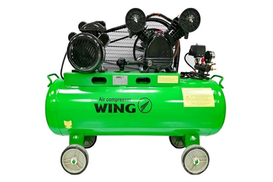 Máy nén khí dây đai Wing TW-V-0.12/8-70L là dòng máy nén khí mini sử dụng dây đai có công suất 1.5HP, dung tích bình 70 lít, phù hợp cho gia đình, tiệm rửa xe nhỏ, cửa hàng sửa xe hoặc các công việc sử dụng khí nén cơ bản. Máy được sản xuất theo dây chuyền công nghệ hiện đại, đảm bảo độ bền cao và khả năng vận hành ổn định.