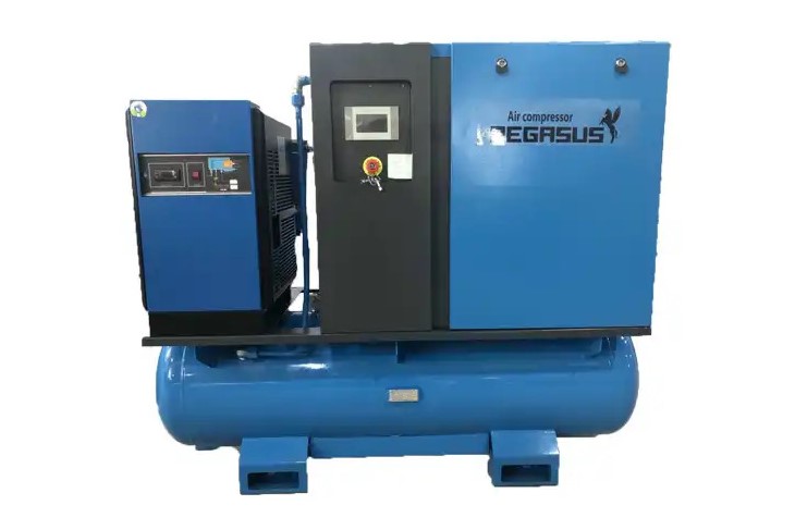 Máy nén khí trục vít tổ hợp Pegasus TMCP20A là dòng máy nén khí công nghiệp công suất 20HP (15kW) được thiết kế dạng tổ hợp 3 trong 1 gồm máy nén khí trục vít, bình tích khí và máy sấy khí. Thiết bị được sử dụng rộng rãi trong các nhà máy, xưởng cơ khí và hệ thống sản xuất cần nguồn khí nén áp suất cao lên tới 16 Bar.