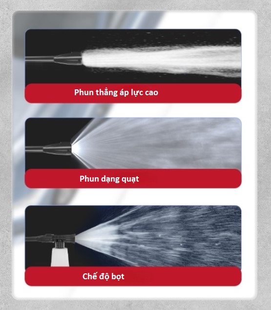 - 💨 Phun dạng quạt: Làm sạch diện tích rộng, tiết kiệm thời gian