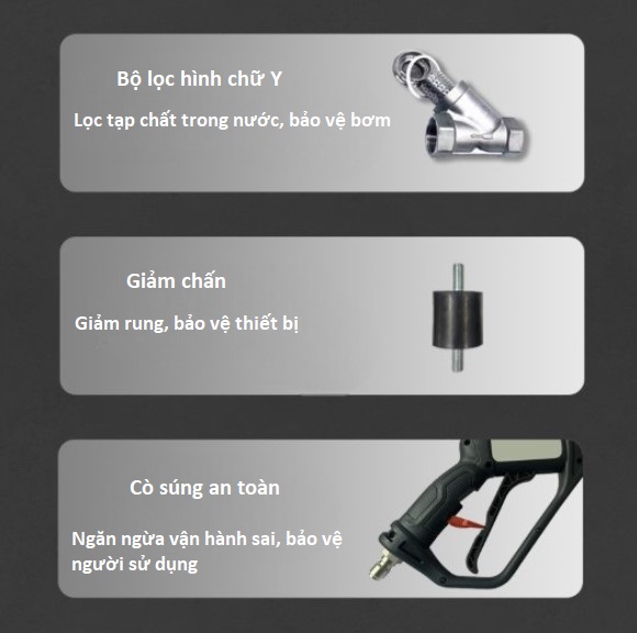 - 💧 Rửa áp lực cao: Loại bỏ bụi bẩn, bùn đất, dầu mỡ
