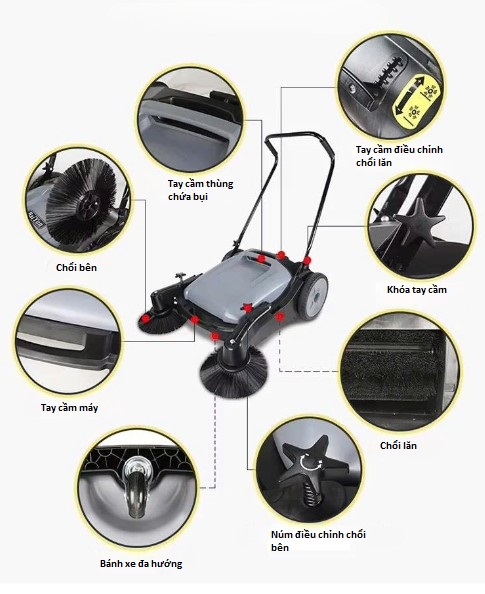- Bền bỉ & an toàn: Bánh xe cao su, chổi bền, tiếng ồn thấp