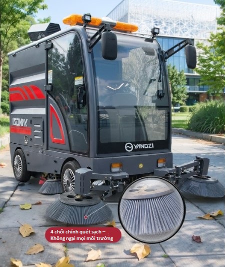 ⚙️ 4. HỆ THỐNG QUÉT – HÚT BỤI – PHUN NƯỚC 3 TRONG 1