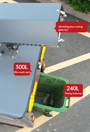 - 🗑️ Hộp chứa bụi treo 240 L, tránh phải đổ rác thường xuyên, giảm bụi thứ cấp