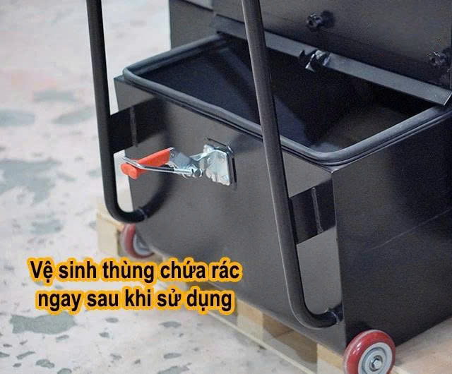 - 🛢 Thùng chứa rác dung tích 120L: Giúp bạn thu gom nhiều rác hơn mỗi lần di chuyển, giảm số lần đổ rác, tiết kiệm thời gian vận hành.