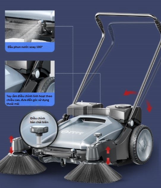 - 🧹 Chiều rộng làm sạch: 920 mm – quét nhanh, rộng hơn hầu hết các máy cơ học khác