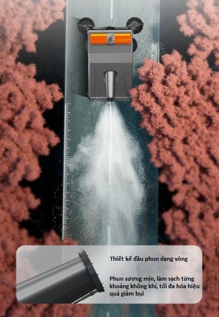 ✅ Phun sương giảm bụi – làm mát – giữ bụi không bay ngược