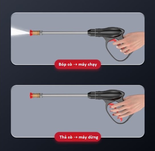 - Bóp cò → máy chạy