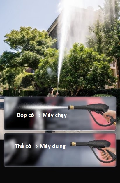 - ✋ Bóp cò → Máy chạy