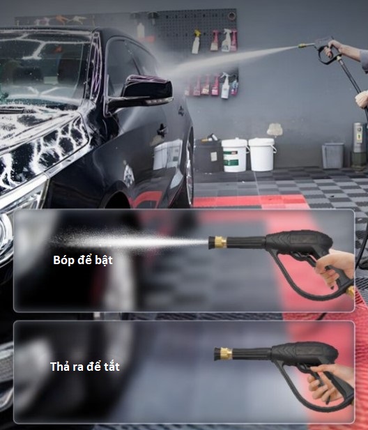 🔘 Bóp cò súng → máy chạy