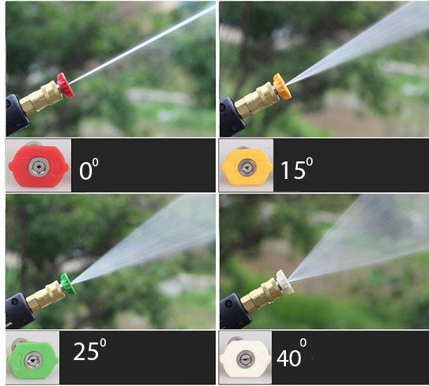 - 🎯 Béc phun 0°, 15°, 25°, 40°: Điều chỉnh linh hoạt, phù hợp cho từng loại bề mặt và nhu cầu vệ sinh.
