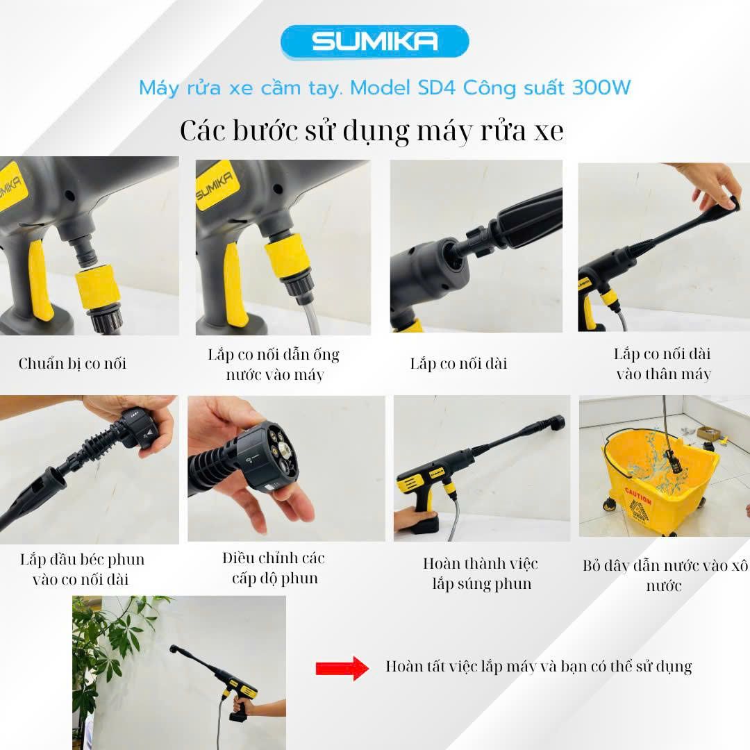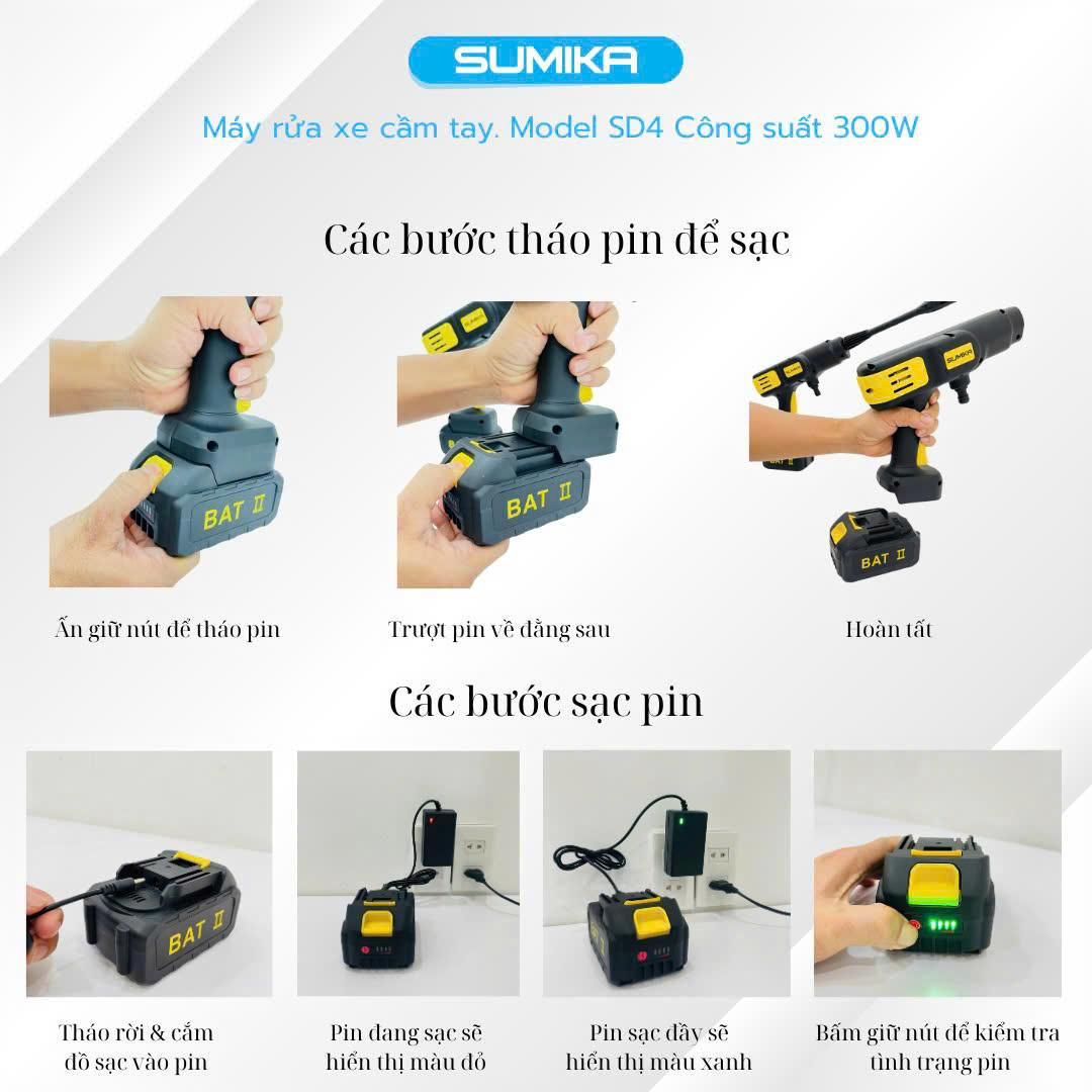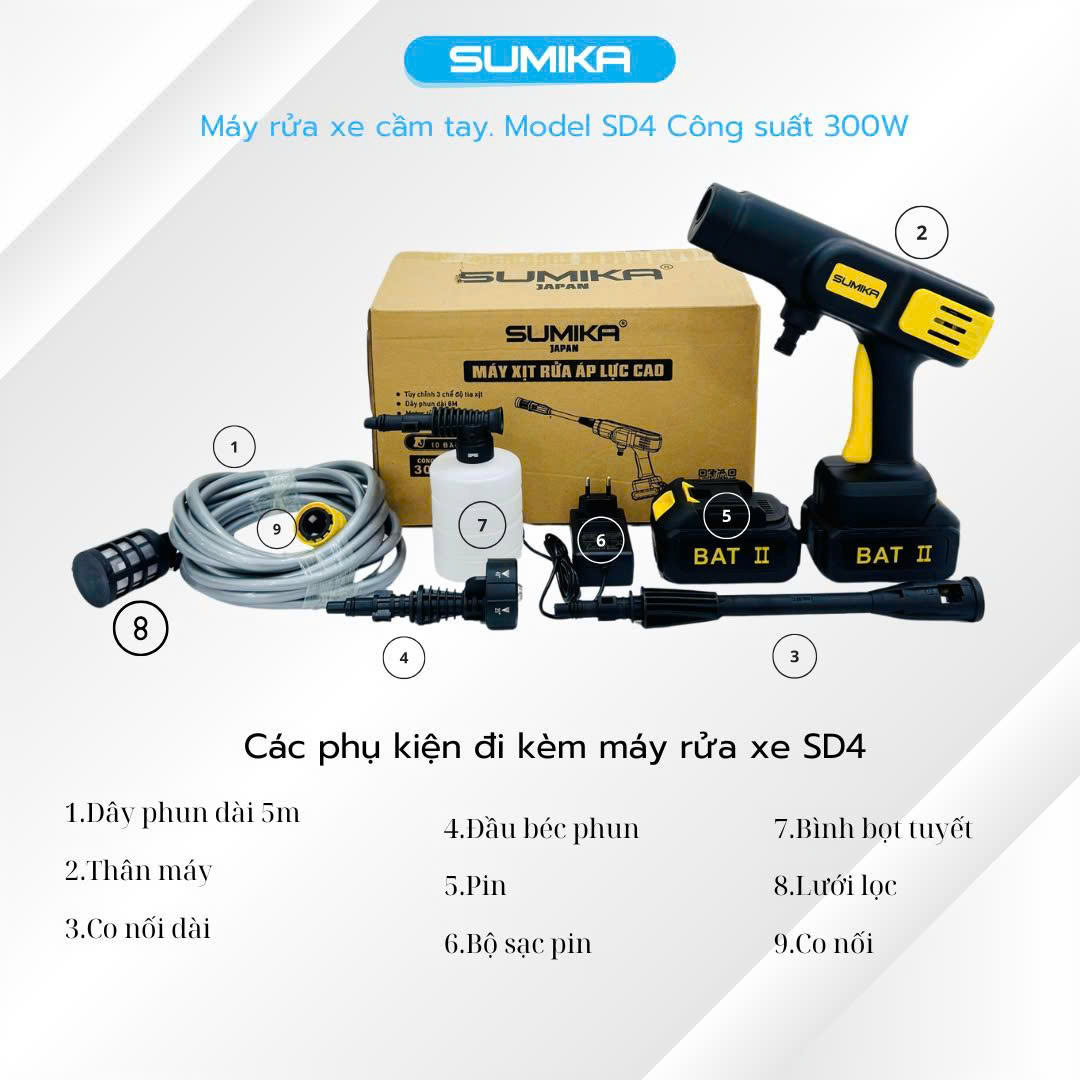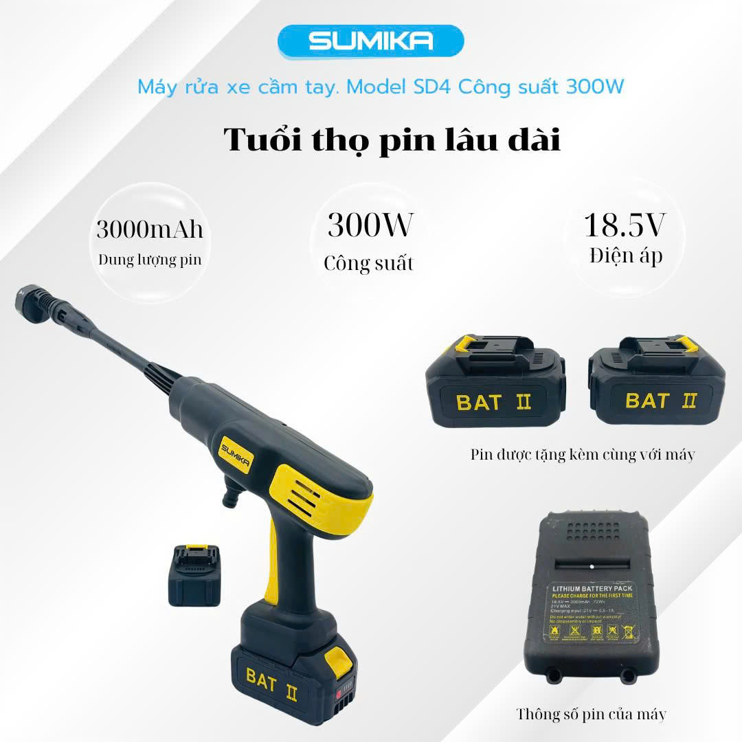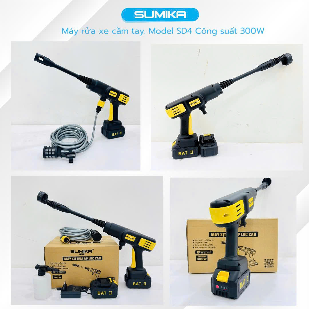 🎯 Máy rửa xe cầm tay dùng pin Sumika SD4 300W là giải pháp hoàn hảo!