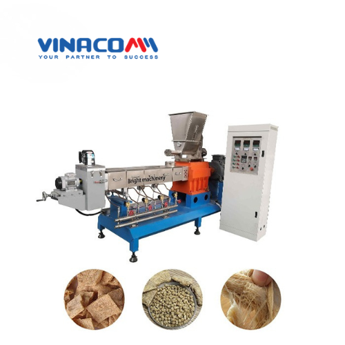Máy sản xuất protein đậu nành TSP (Textured Soy Protein) là thiết bị chuyên dùng trong chế biến thịt chay, thực phẩm ăn liền và nguyên liệu dinh dưỡng từ đậu nành. Công nghệ ép đùn trục vít đôi hiện đại giúp tạo cấu trúc sợi xốp, dai, giữ hàm lượng protein cao và tái hydrat hóa tốt khi nấu.