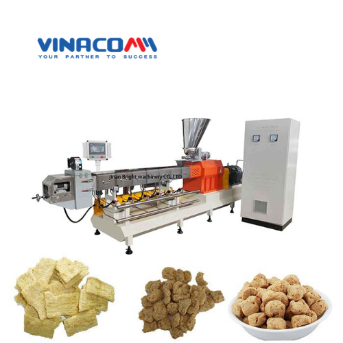 Máy sản xuất protein đậu nành là thiết bị quan trọng trong ngành thực phẩm chay và thực phẩm thay thế thịt. Dây chuyền sử dụng công nghệ đùn trục vít đôi để tạo cấu trúc xơ protein TSP (Textured Soy Protein), giúp thành phẩm có độ dai, nở tốt và giàu dinh dưỡng. Hệ thống vận hành tự động, ổn định, phù hợp nhà máy sản xuất quy mô vừa và lớn.