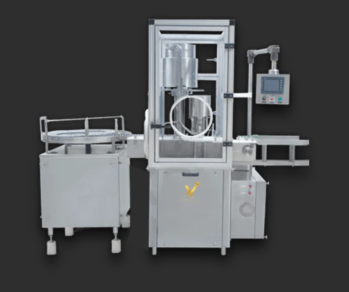 Máy siết nắp lọ NKCS – 80 có tốc độ sản xuất lên đến 50 đến 60 lọ mỗi phút.