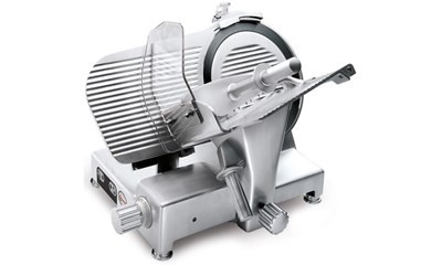 Máy được trang bị lưỡi dao có đường kính lên đến 330 mm, cho phép cắt các loại thực phẩm lớn và dày như thịt, phô mai hoặc rau củ với độ chính xác cao.