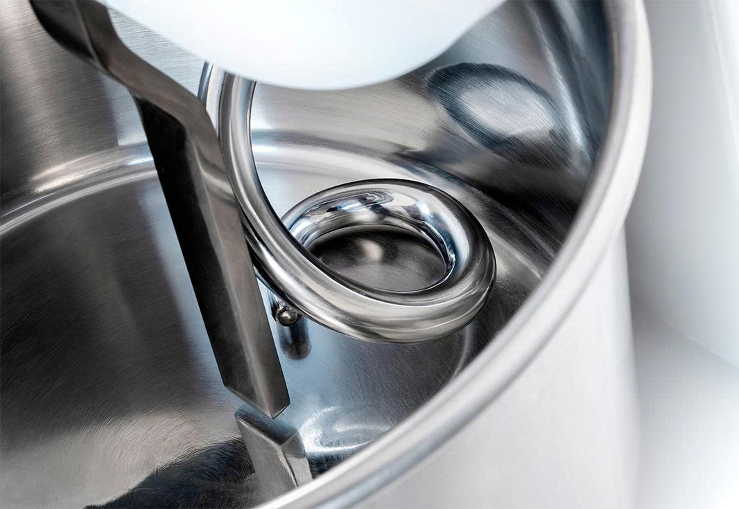 → Lưỡi trộn chuyển động xoắn quanh trục và quay ngược chiều với tô bột, giúp tạo lực nhào sâu, đều, làm cho bột dẻo hơn, đàn hồi tốt hơn, không bị vón cục.