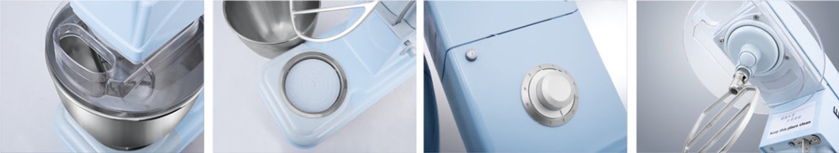 - ✅ Tấm chắn chống bắn tích hợp: Bảo vệ người dùng khỏi bột và nguyên liệu bắn ra trong quá trình trộn.