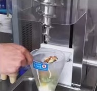 Bước 2: Tùy theo yêu cầu của khách hàng mà cho thêm các loại trái cây, các loại hạt,..đặt vào tô trộn. Nhiệt độ trái cây khuyến nghị là 0℃ ~ 5℃.