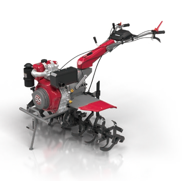 Máy đi kèm 4 bộ dao (3+1+1 nhóm), lưỡi xới 400-8 và bánh xe cao su, hỗ trợ đa dạng nhu cầu làm đất và di chuyển thuận tiện.